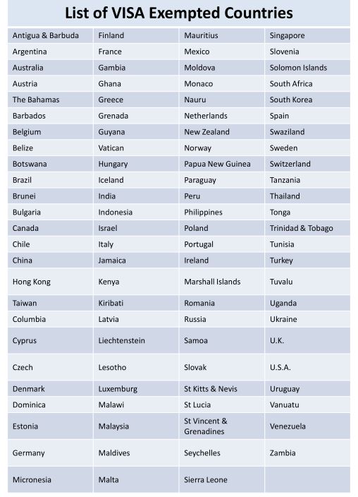 하단은 피지 관광비자 면제 국가들 리스트입니다.